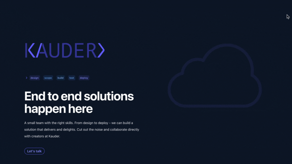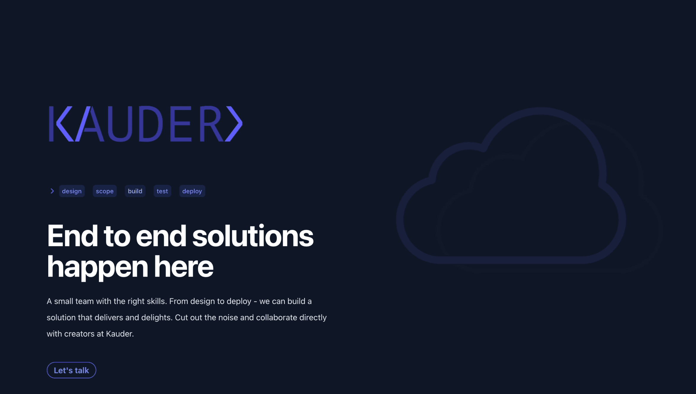 I was asked to create a logo and website for a new software development studio - Kauder.io The company was registered in New Zealand and they'd chosen to spell their company name phonetically from the founder's Maori roots. I recognised the opportunity to turn the "K" of Kauder into a cursor and angle bracket. This enabled audiences unfamiliar with the brand to instantly recognise the company's service.